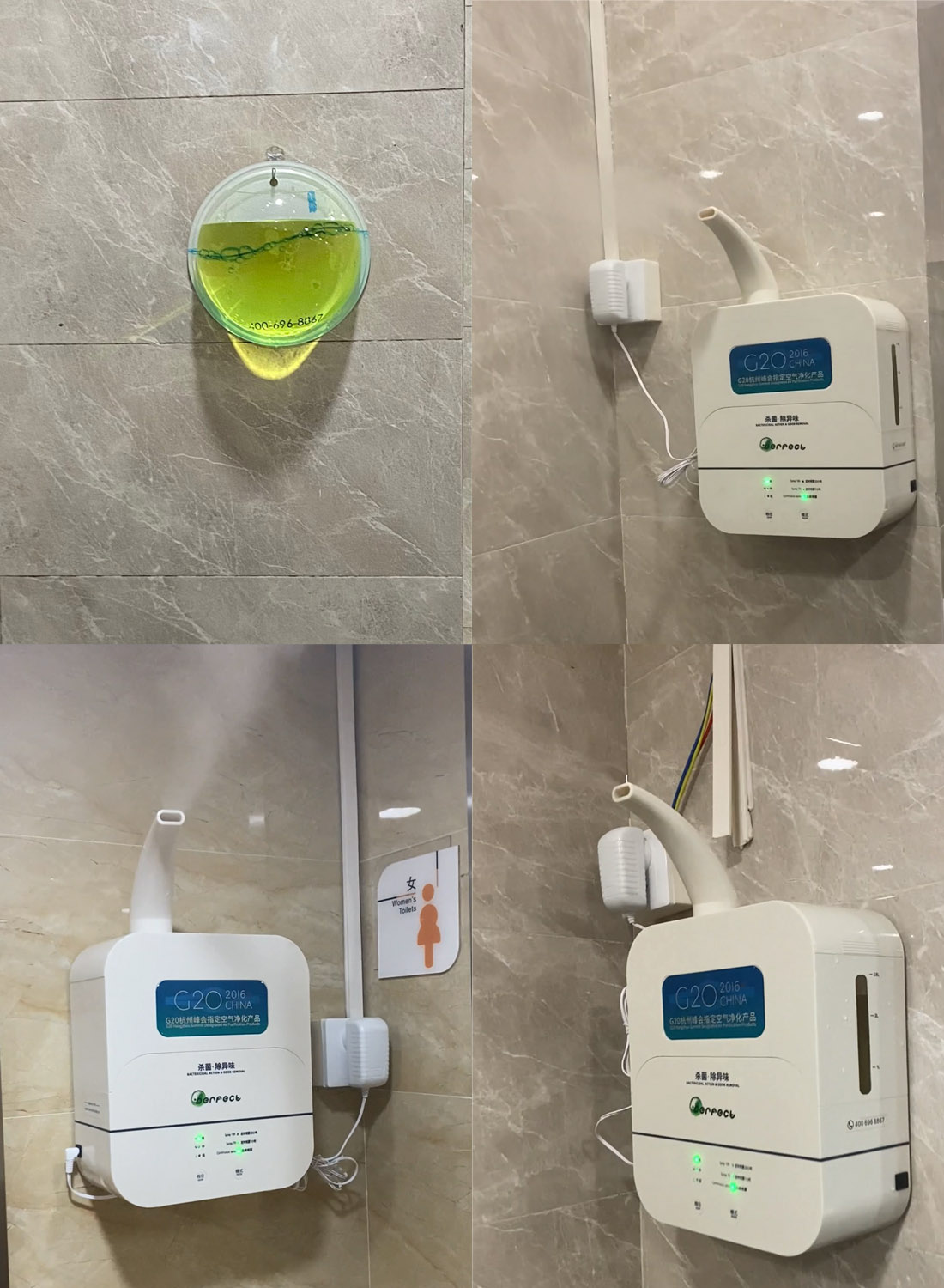 上海龍之夢購物中心衛生間有異味和細菌始終無法解決問題,客戶選擇我們后,我們針對其衛生間比較大,單一安裝凈化片+霧化器的方案不能充分覆蓋整個衛生間,所以在衛生間一些輔助角落還安裝了凈化片+水的靜置除臭和除菌方案,同時在其地下停車場污水池也安裝了凈化片+霧化器的方案進行除臭殺菌。